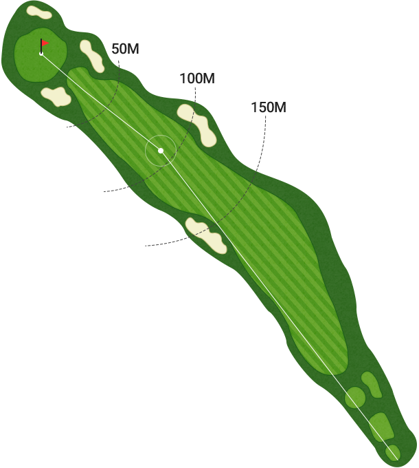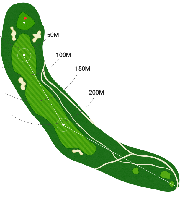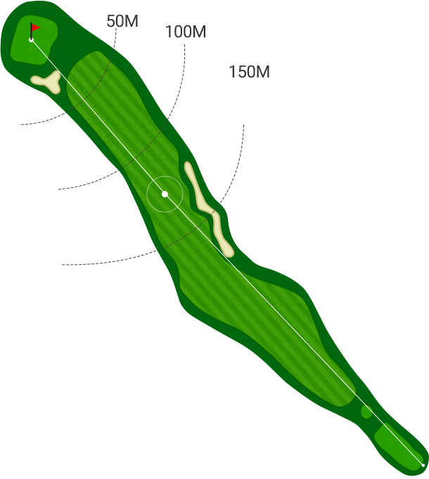 정확하게 티샷을 할 경우 투온이 충분히 가능하며 우측으로 밀리면 그린이 보이지 않아 투온이 힘든 홀이다.