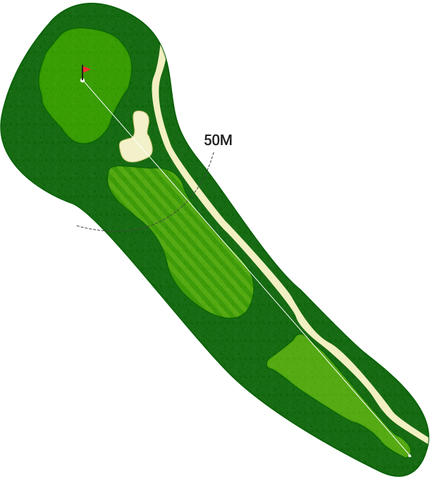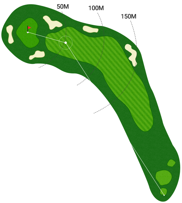 그린은 경사도가 심하고 까다로운 홀이므로 핀에 근접할 수 있는 정확한 샷이 요구된다.