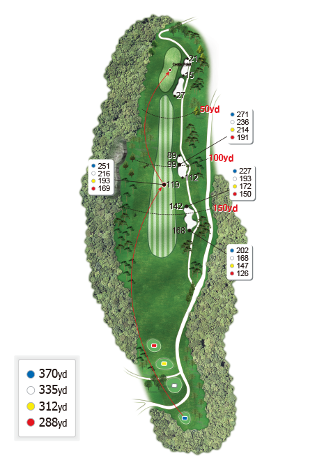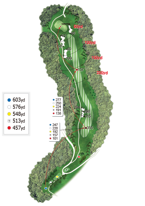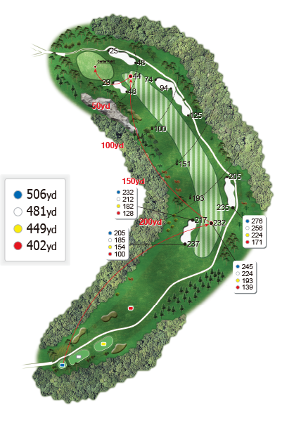 짧은 파 5홀 좌도그랙 홀로, 투온을 노릴 수 있는 도전적인 코스입니다.