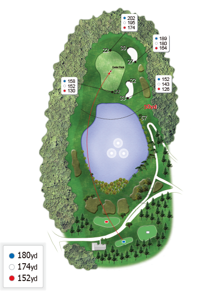파만 잡아도 버디로 인정하는 매우 어려운 홀이죠. 행운이 한 타 한 타 찾아오기를 기원합니다.