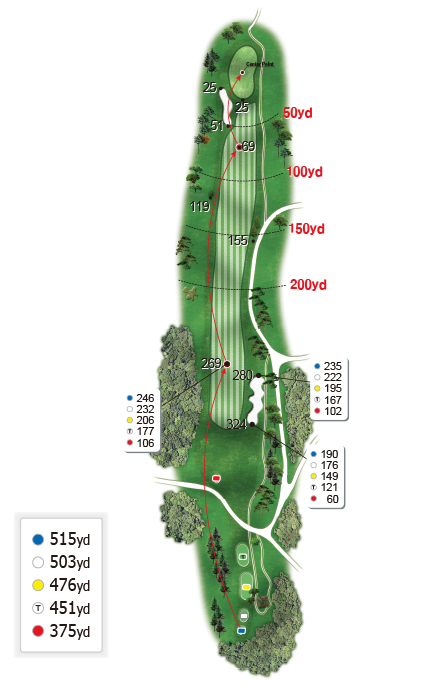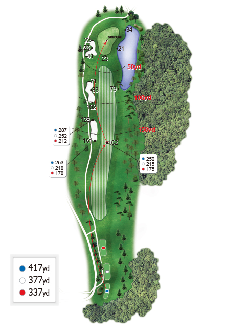 긴 파 4홀로 장타자가 아니면 투 온하기 쉽지 않은 홀입니다. 하지만 그 ‘쉽지 않음’을 극복하는 것이 즐거움이 아니겠습니까. 더구나 가을 단풍과 야생화를 감상하며 거니는 길은 쾌적하고 아름답습니다.